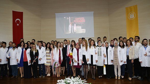 Programın sonunda, Eczacılık Fakültesi öğrencilerine, staj gördükleri eczacılar ve hocaları tarafından beyaz önlük giydirildi.