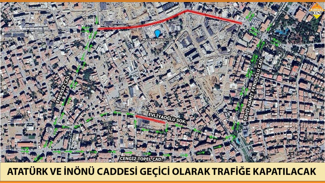 24 Kasım Pazartesi günü saat 21.00’den itibaren başlayacak uygulama, 26 Kasım Çarşamba günü saat 06.00’ya kadar devam edecek. Bu süre zarfında, Saat Kulesi Kavşağı’ndan İnönü Caddesi Kız Meslek Lisesi (Emeksiz Kavşağı) istikametine kadar olan güzergâh iki yönlü olarak trafiğe kapalı olacak.