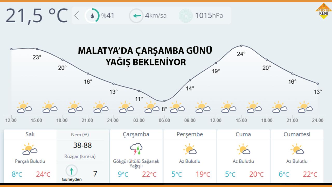 Perşembe gününden itibaren yağışların yerini tekrar az bulutlu bir havaya bırakması bekleniyor. Perşembe ve cuma günleri sıcaklık 19-20 derece civarında seyredecek, cumartesi günü ise en yüksek sıcaklık 22 derece olacak.
