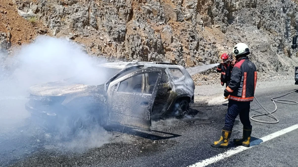 Malatya-Çelikhan yolu üzerinde seyir halindeki bir araçta henüz belirlenemeyen bir nedenle yangın çıktı.