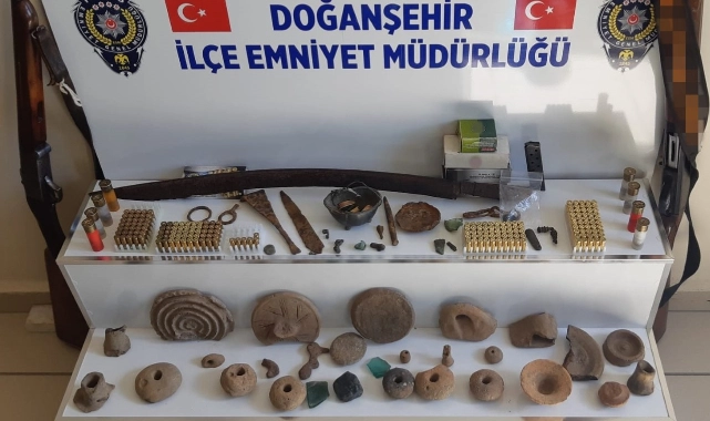Soruşturma kapsamda şahıslardan birinin ikametinde yapılan aramada ise 2 adet ruhsatsız av tüfeği, 8 adet kapsül, 191 adet çeşitli ebatlarda fişek ile farklı dönemlere ait tarihi eser niteliği taşıyan toplam 64 parça materyal ele geçirilmesi üzerine “2863 sayılı Kültür Ve Tabiat Varlıklarını Koruma Kanuna Muhalefet” kapsamında işlem yapılarak eserler Müze Müdürlüğüne teslim edildi” bilgisine yer verildi.